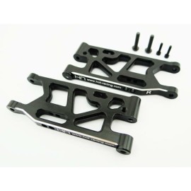 Hot Racing optional aluminum front lower suspension arms for the Losi 1/14 scale Mini 8ight buggy (not truggy).FEATURES: - CNC machined billet aluminum construction- Anodized black- Secondarily processed machined bevel edges for outstanding looksYOU WILL RECEIVE: - One (1) left and one (1) right front lower suspension armCOMMENTS: - Replaces Los..