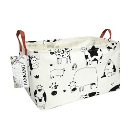 FANKANG Storage Basket,Nursery Hamper Canvas Laundry Basket Foldable with Waterproof PE Coating Storage, Office, Bedroom, Clothes,Toys(L, Rec-cows)