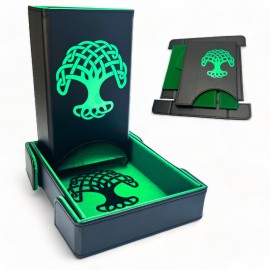 Luck Lab Folding Dice Tower and Dice Tray for RPG Table Top Gaming - Black/Green - Tree of Life Design