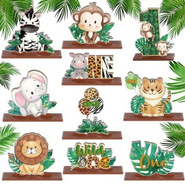 Barydat 10 Pcs Wild One Sign Safari Jungle Animal Small Table Wooden Centerpieces Wild One Birthday Decorations for Boys Baby Shower Centerpieces for Tables Party Supplies Photo Props