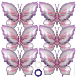 6 Pieces Butterfly Balloons, Purple Butterfly Foil Mylar Balloons,Butterfly Baby Shower Decoration for Butterfly Themed Party Wedding Birthday Party Baby Shower Decorations Supplies(Purple)