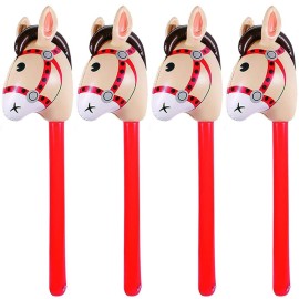 4PCS Inflatable Stick Horse - Pony/Western Cowboy/Horse Baby Shower Birthday Party Decorations Inflatable Horse Head (Red)
