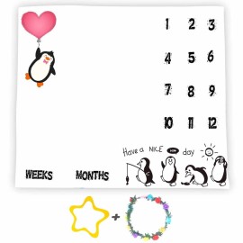 Penguin Baby Monthly Milestone Blanket, 48x40in Soft Flannel, Red Love Heart, Newborn Mom Gifts, Baby Shower Age Growth Tracker with Bonus Maker BTYYSS31