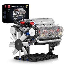 Mould King 10088 V8 Engine Model Kit - 535 Pcs to Build Your Own Mini Engine That Works - DIY STEM Mechanic Engineering Construction for Kids/Teens, Hobby Building Blocks Kit for Adults