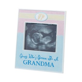 Lillian rose 5.5x6.5grandma ultrasound frame. This guess who\'s gonna be a grandma ultrasound frame is a fun and exciting way to share the news. Soft blues, pinks and yellows are painted on the resin frame, which holds one 3.75 x 3 picture. The entire frame measures 5.25 x 6.25. There is an easel in back...