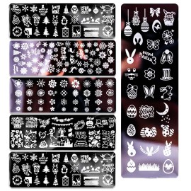 Nail Stamping Plate, DANNEASY 6 Pieces Nail Stamp Design Tool Nail Art Stencils Manicure Template with Nail Stamper, Scraper, Storage Bag (Holiday Style)