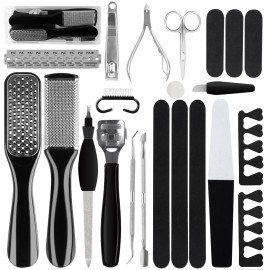 Professional Manicure and Pedicure Tool Kit Professional Exfoliation Foot File Set for Women and Men at Home Or Travel Or Salon to Foot Care (BlackB-30PCS)