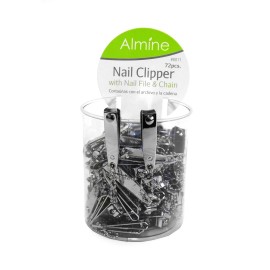 Wholesale lot of 72 pieces fingernail clipper - Stainless Steel. Heavy-duty medium sized clipper with sharp straight cutting edges. Can also be used to cut acrylic tips. Built in file is great for filing and cleaning underneath nails. Chain makes these nail clippers convenient for travel. Tip: To avoid cracking and splitting, soak nails in warm wat..