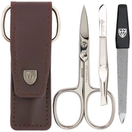 3 Swords Germany - brand quality 3 piece manicure pedicure grooming kit set for professional finger & toe nail care scissors file genuine leather case in gift box, Made in Solingen Germany (03744 )