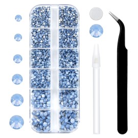 3792 Pcs Blue opal Crystal Flatback Rhinestones Set for Nail, Art, Crafts, Makeup, Tumblers Glitter Round with Tweezers and Picking Pen(SS6~SS20)