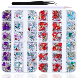 PACKAGE CONTENTS: 1 Box Blue Crystal, Flat Back Rhinestone, Metal Nail Studs 1 Box Mix-color Crystal, Flat Back Rhinestone, Nail Gemstone 1 Box Red Heart Shaped Crystal, Flat Back Rhinestone, Nail Studs 1 Box Purple Crystal, Flat Back Rhinestone, Metal Nail Studs 1 Pc Rhinestone Picker Pencil - Long: 17.5cm/ 6.89 inches 1 Pc Nail Tweeze..