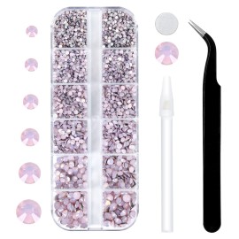 3792 Pcs Pink opal Crystal Flatback Rhinestones Set for Nail, Art, Crafts, Makeup, Tumblers Glitter Round with Tweezers and Picking Pen(SS6~SS20)