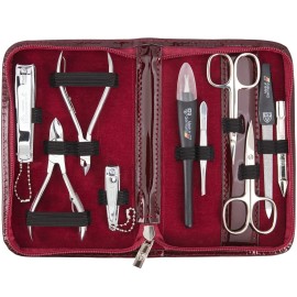 3 Swords Germany - brand quality 10 piece manicure pedicure grooming kit set for professional finger & toe nail care scissors clipper fashion leather case in gift box, Made by 3 Swords (6226)