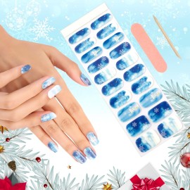 Kalolary Snowflake Gel Nail Strips, Winter Full Wraps Stickers, White Christmas Tree Real Gel Nail Polish Wraps New Year Nail Art Design for Women Girl