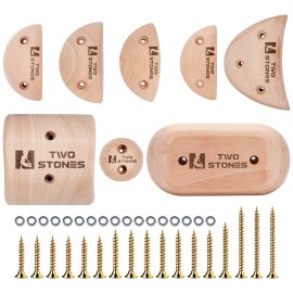 TWO STONES Wooden Rock Climbing Holds Kids and Adults | Wood Rock Wall Climbing Holds Kids and Gyms | Variety Screw On Climbing Hand Holds Set with Mounting Hardware
