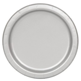 Solid Silver Round Disposable Paper Dinner Plates - 9\'\', 16 Pieces - Perfect for Parties, Weddings, Holidays & More