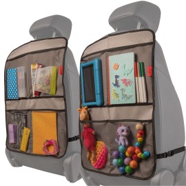 Lusso Gear Kick Mats (2 Pack) - Car Seat Back Protectors, Premium Waterproof Fabric, Reinforced Corners to Prevent Sag, and 4 Mesh Pockets for Large Storage (Gray)