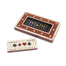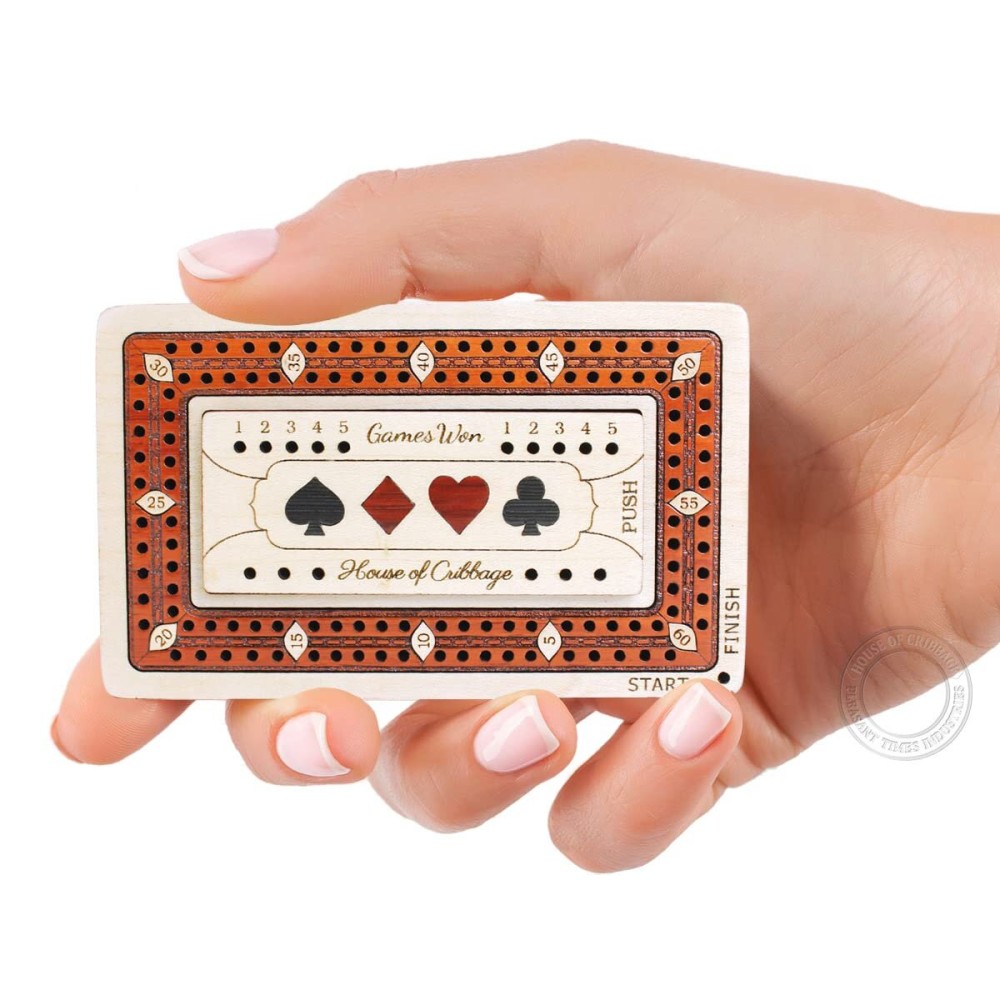 House of Cribbage - 2 Track - Wooden Travel/Pocket Size Cribbage Board - 4 Inch - Inlaid in Maple Wood/Bloodwood with Storage Space for Cribbage Pegs - 60 Points - Non Continuous