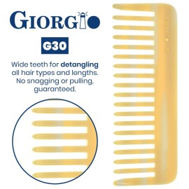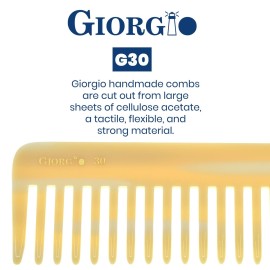 Giorgio G30 Large 5.75 Inch Detangling Comb, Wide Teeth for Thick Curly Wavy Hair. Long Hair Detangler Comb For Wet and Dry. Handmade of Cellulose, Saw-Cut, Hand Polished, Ivory