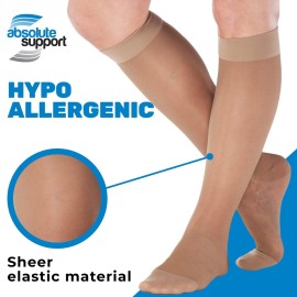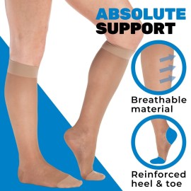 ABSOLUTE SUPPORT Made in USA - Sheer Graduated Support Opaque Compression Knee High Socks for Women 15-20mmHg | For Airplane, Flight, Travel Circulation - Taupe, Large - ATRAVEL101T3