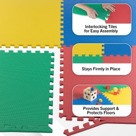 EVA Foam Mat Tiles 4-Pack - 16 SQ FT Interlocking Padding for Playroom or Gym Flooring - Workout Mat or Baby Playmat by Stalwart (Multicolor)