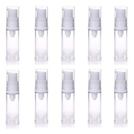 10pcs Airless Pump Press Bottle Empty Plastic Vacuum Lotion Bottles Clear Containers Cosmetics Skincare Travel Size Dispenser (15ml)