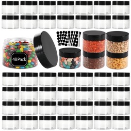 EkkoVla 40 Pack 6 oz Clear Plastic Jars Wide Mouth Round Containers with Black Lids BPA FREE, Empty Multi-use Refillable Storage Jar with Airtight Lid for Cosmetics Beauty Products