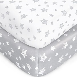 Crib Sheets for Boys or Girls 2 Pack, Fitted Crib Sheet for Standard Size Crib and Toddler Mattresses, Soft and Breathable Material, Grey & White