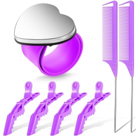 7 Pieces Hair Braiding Tools 1 Piece Magnetic Pin Wristband and 2 Pieces Stainless Steel Pintail Rat Tail Comb with 4 Pieces Wide Teeth Alligator Sectioning Hair Clip for Hair Braid Maker (Purple)