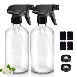 Worldgsb Glass Spray Bottles, 16oz Clear Glass Spray Bottles with Labels & Adjustable Nozzle, Reusable Containers for Cleaning Solutions, BBQ, Food, Plants, Alcohol, Essential Oils(2 Pack)