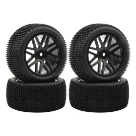 Buggy 2X Front 2X Rear Rubber Tires Black Wheel Rim for RC HSP 1:10 Off-Road Pack of 4