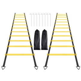 2 Pack 12 Rungs Agility Ladder Set, Speed Training Ladder with Steel Stakes and Carry Bag for Soccer, Speed Fitness Feet Training (2 Pack, 12 Rungs)