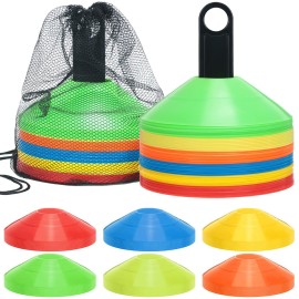 120 Pcs Pro Disc Cones Training Cones Agility Soccer Cones for Drills Cones with Holder and Carrying Bag, Training Equipment Multi-Color Kids Games Outdoor Indoor Feature: Training cones for drills set is upgraded color, safe, durable, and easy to storage. Soccer disc cones improve your ability to quickly accelerate, decelerate, and change directi..