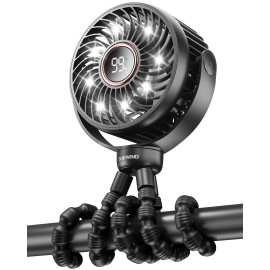 SHEWIND Stroller Fan, 4000mAh Portable Battery Operated Smal Clip on Fan, 4 Speed Rechargeable Mini Personal Cooling, Travel for Baby Car Seat Crib(Black)