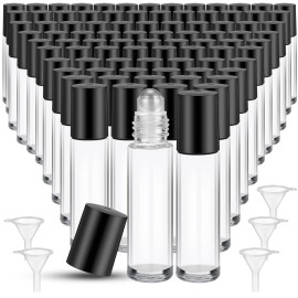 Sumind 150 Pcs Essential Oil Roller Bottles 10 ml Glass Empty Roll on Bottles with Stainless Steel Balls Leak Proof with 5 Funnel for Travel Essential Oil(Clear)