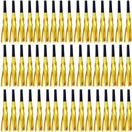 LCPQMZGH 48 Pcs Gold Noise Makers Glitter Metallic Fringed Noise Makers Horns for Baby Shower, Kids Birthday, Wedding Party, New Year Party Favor