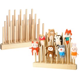 Briwooody Finger Puppets Stand 11.8 x 3 Inch Wooden Finger Puppet Holder for Kids Toddlers Classroom Home Anti Crush Stand for Storage and Easy Accessibility
