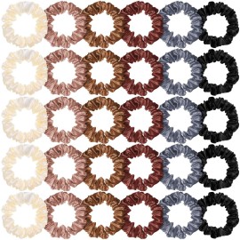 willbond 30 pcs small satin silk scrunchies bulk for women girls, thin hair ties mini scrunchy hair bands skinny ponytail holders for thick curly hair pony tails wrist decor Features: Lovely gifts: Simple design and well-made satin hair bands will be favored by most girls and ladies, suitable for women in all ages, can be a good gift choice for w..