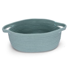 XUANGUO Small Woven Basket Cute Oval Cotton Rope Baby Gifts Baskets with Handle Empty Wicker Storage Baskets For Kids Cat Dog Toy Nursery Bin Easter Basket Light Green