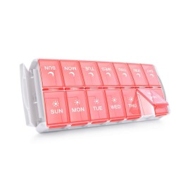 - NOTE: Please refer to the Overall Size & Compartment size before ordering. Overall Size: 4.7"L x 2.9"W x 1.25"H. Large Compartment Size: 1.4"L x 1.2"W x 0.6"D. Small Compartment Size: 1.05"L x 1.2"W x 0.6"D. Large compartment holds up to about 5 big fish oils or 7 capsules. Small compartment holds up to about 3 big fish oils or 5 capsules. | PRODUCT INCLUDES - You will get 1 PCS 14 compartment pill case box [Clear Blue] + 415 PCS pre-printed medecine name labels + 19 PCS blank labels. You can customize some informations such as medicine name, brand, usage, dosage, etc. on the these labels. | FEATURE ABOUT 415 PRE-CUT MEDICINE NAME LABELS -①Include most household medication, fish oil, vitamins, supplements, etc. name labels; ②No duplicate labels; ③Pre-cut to fit the lids perfectly; ④Writable labels for writing brand or other text; ⑤Non-marking adhesive for easy removal and replacement; ⑥Comeing with catalog make it easy to find target labels; ⑦Don't contain any information about any brand. Just like the images you see. If the labels are not what you want please don't buy the product! | IDEAL COMPARTMENT SIZE - 14 compartments in total, 6 large and 8 small. Each lid is easy to open and close. The size of the compartment is very suitable for storing a certain amount of common medicines, fish oil, vitamins, supplements, etc., Meets your daily or weekly intake needs. | FOLDING DESIGN & SAVES SPACE - Compact design makes it easy to carry. You can easily fit them in your pocket, tote bag, suitcase, car storage compartment, office desk or drawer, etc., Make it be a palm pharmacy, always accompanied by you within reach! A perfect personal or family, work, out door or travel essentials pill organizer dispenser. | Food Grade & BPA Free Plastic - Each compartment has a separate locking cover, and all compartments are locked and protected by external safety buckles. They are made of Food Grade & BPA free materials to protect your medicine to be safety, health, cleanliness and tidiness.