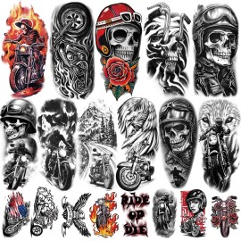 - LARGE SIZE AND MORE QUANY -- Total 77 Sheets Temporary Tattoo Stickers for Men and Women Adults Including 17 Sheets Large Size (7.48*3.74 inches) and 60 Sheets Small Size (3.85*2.28 inches), The large size can cover more arm area and the small size can show your personality | UNIQUE DESIGN -- including skulls, flowers, heart, small animals and more. Can be attached to various parts of the body, such as arms, shoulders, back, thighs, waist, etc | SAFE AND LONG LASTING - Our temporary tattoo stickers are waterproof, can last for many days on the body. The effect is realistic, close to the real tattoo. safe and fun for all ages including kids & adults. these realistic waterproof tattoos can also apply them to some smooth objects such as glass, paper, plastic, phone case, bags and books | EASY TO APPLY & REMOVE -- APPLY: Remove clear film, Put the sticker on dry skin and wet it with water, and you can get a tattoo in 20 seconds. REMOV: Rubbing the tattoo area with alcohol will remove the tattoo instantly | Applicable Occasions -- Show your personality in different occasions, such as dress up balls, evening parties, birthdays, weddings, pride of america, beach, gym, cosplay costume, day of the dead, halloween tattoos, christmas, concerts, bachelor parties and sports games