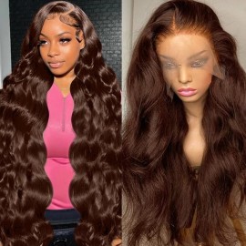 abbildung 34inch Chocolate Brown Lace Front Wig Human Hair 13x6 HD Transparent Body Wave Lace Front Wigs Human Hair Pre Plucked Glueless Frontal Brown Wig Human Hair 180% Density