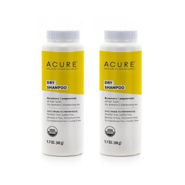 Acure Dry Shampoo - Mini Powder Dry Shampoo for Women with Blonde & Dark Hair, Care to Refresh Treated Color Tinted Hair with Rosemary & Peppermint, Non Aerosol, Vegan - 1.7 oz Travel Size (2 Pack)