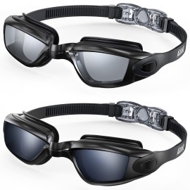 Aegend Swim Goggles, 2 Pack Swimming Goggles No Leaking Adult Men Women Youth, UV Protection, Anti Fog, Light Black & Deep Black
