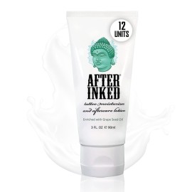 After Inked Tattoo Aftercare Lotion - Moisturizing Balm for Inked Skin, As Seen on INK MASTER - Hydrating Cream with Grape Seed Oil, Skin Nourishment & Daily Maintenance- 3 Fluid oz Tube (12-Pack)