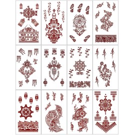 Henna Tattoo 12 Sheets Red Brown Henna Mehndi Temporary Tattoos for Women and Teen Girl, Waterproof Realistic Fake Tattoos for Wedding Beach Rave Festival Party Makeup Body Paint Parties Friends etc