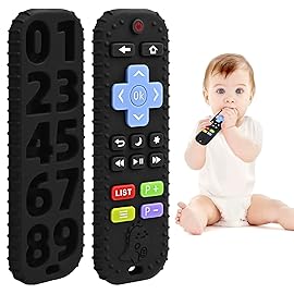 Product Name: 3 6 9 10 12 18 months Baby Remote Teether Toy Material: 100% Food-Grade Silicone Size: L 6.4 x W 2.1 x H 0.4 Weight: 0.16 pounds When your baby in the teething, the gums will itch and pain, and baby will be easily irritable, cry, and loss of appetite, so you need a teether toy to help your baby relieve those discomforts. Our teethers..