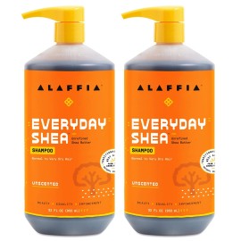 Alaffia EveryDay Shea Shampoo, Gentle Cleansing Shampoo for Normal to Dry Hair, Made with Fair Trade Unrefined Shea Butter, No Parabens or Phthalates, Unscented, 2 pack - 32 Fl Oz Ea