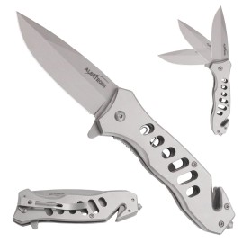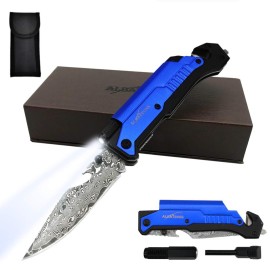 ALBATROSS 6-in-1 Survival Tactical Military Folding Pocket Knives with LED Light,Seatbelt Cutter,Glass Breaker,Magnesium Fire Starter,Bottle Opener;Multi-Function Emergency Tool(Blue)