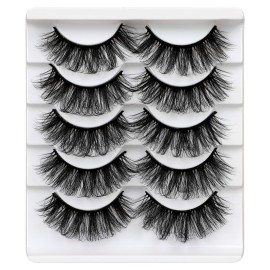ALICROWN Mink Lashes Faux Wispy Natural Volume Lashes Pack 5D Thick Volume Crossed False Eyelashes Full Handmade 5 Pairs Lashes